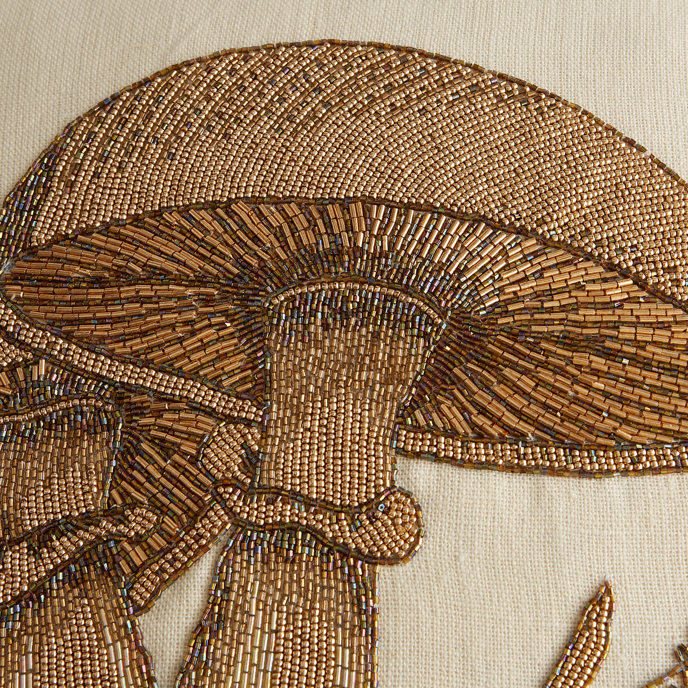 Perline dorate scintillanti ricamate su lino bianco: attrazioni naturali che ti coccolano. Il perfetto must-have hippie per la tua collezione di cuscini eccentrica ed eclettica. Abbinale a tessuti in tinta unita e guardale risaltare, oppure mettile a strati in una stanza già ricca di decorazioni.