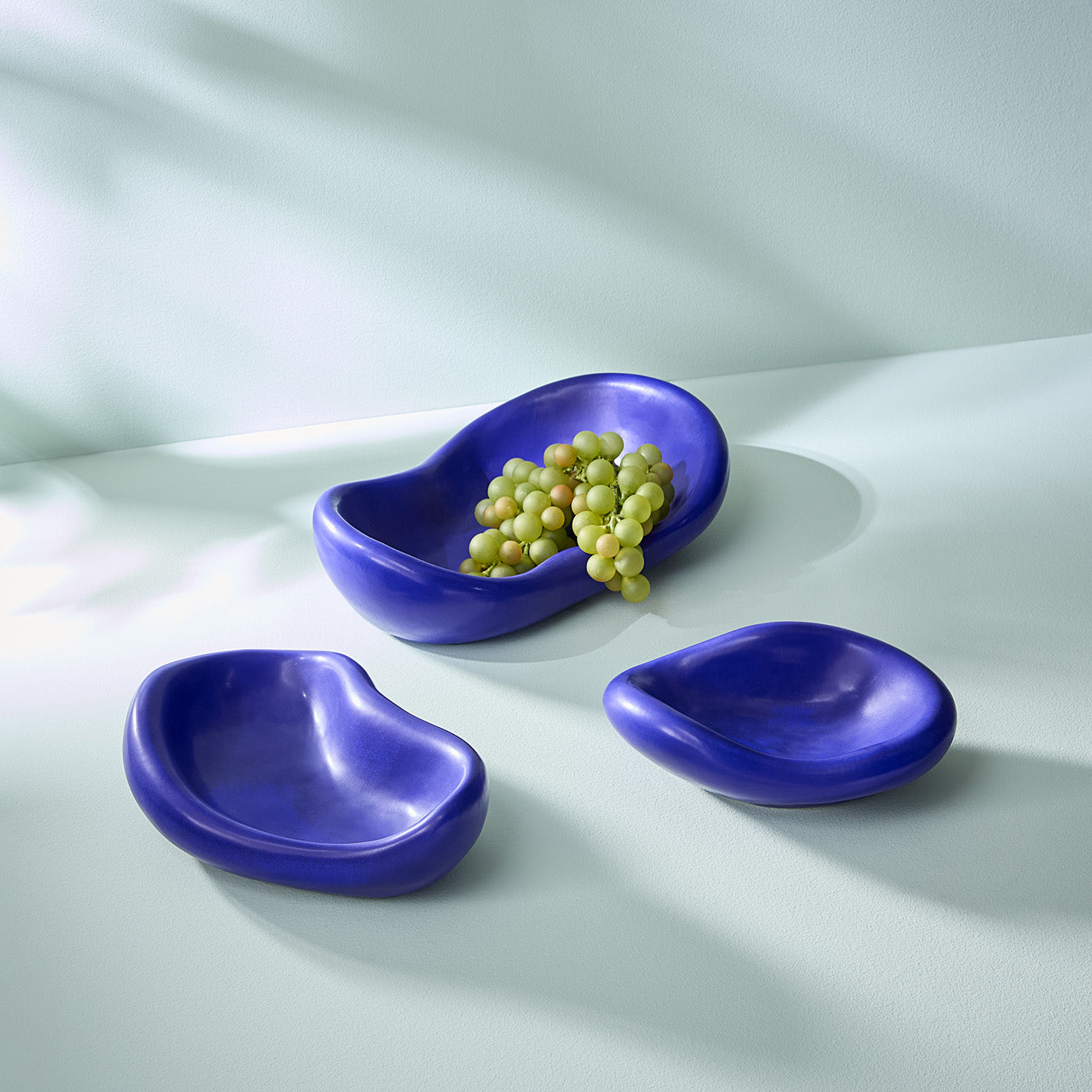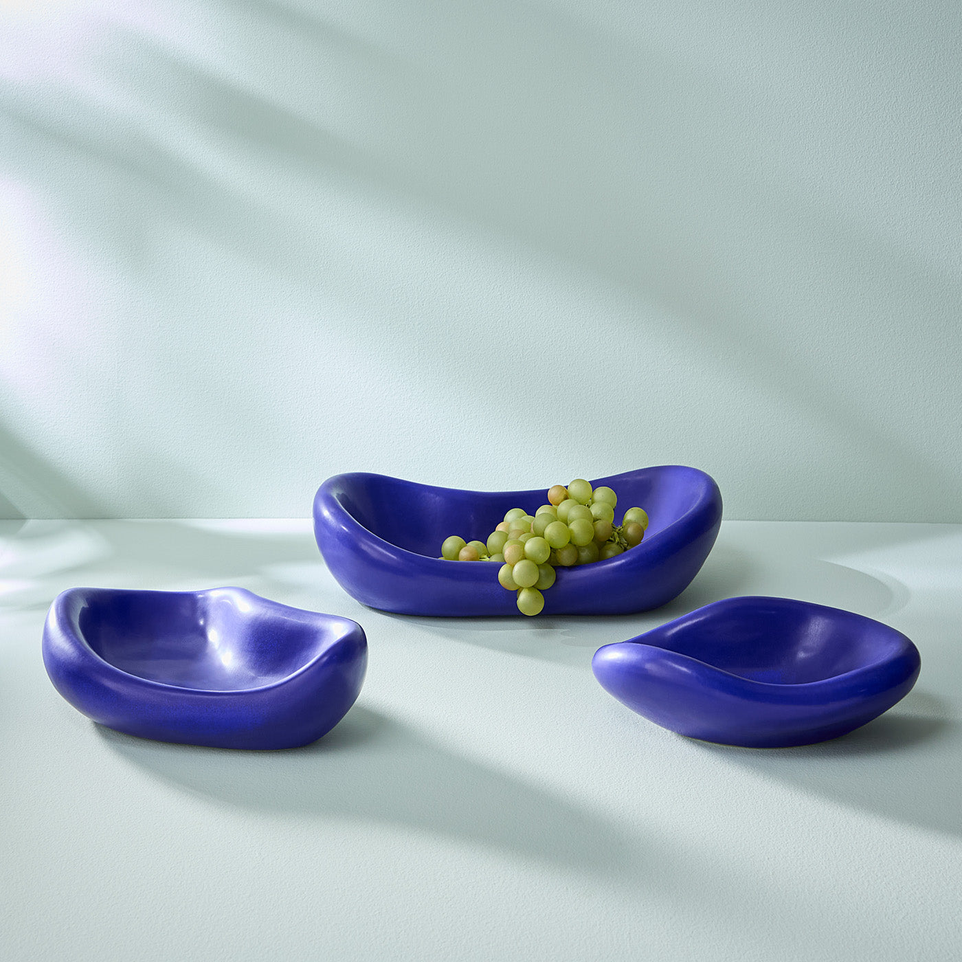 Sculture e ciotole in gres rifinite con la nostra nuova e scintillante smaltatura cobalto satinata opaca. Ogni tonalità ha il suo momento e il cobalto è decisamente di tendenza . Jonathan e il suo team hanno setacciato il mondo per trovare un laboratorio partner che abbia perfezionato questa smaltatura: ricca, profonda, che ridefinisce gli oggetti . Non c'è niente di più cobalto di questo: usalo per ravvivare il tuo spazio o sovrapponilo per un momento monocromatico. Ciotole disponibili in tre misure.