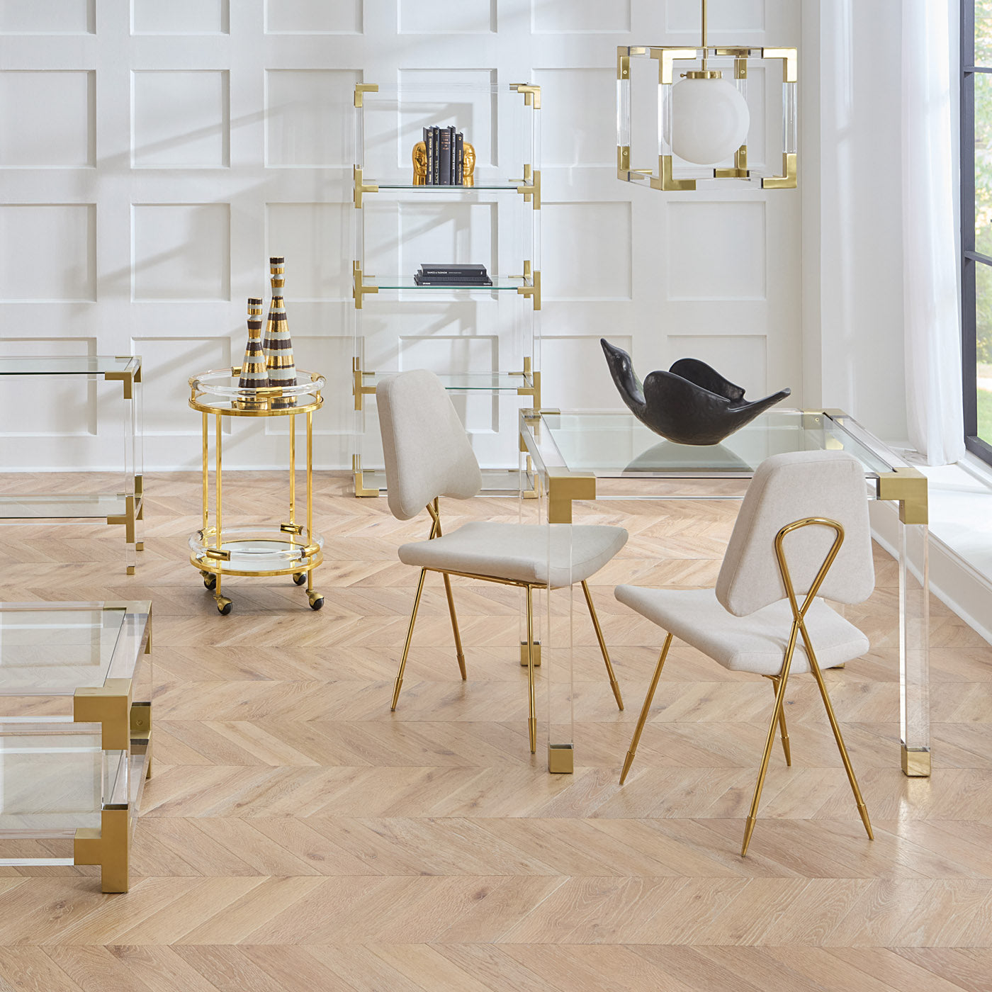 Acrilico trasparente di lusso con angoli in ottone spazzolato. Niente completa una stanza come un tavolo da gioco in un angolo con un lampadario appeso sopra. Il perfetto mix di semplicità e glamour, moderno e tradizionale, il nostro tavolo da gioco Jacques può essere utilizzato anche come piccolo tavolo da pranzo. Grande presenza, leggerezza e trasparenza.