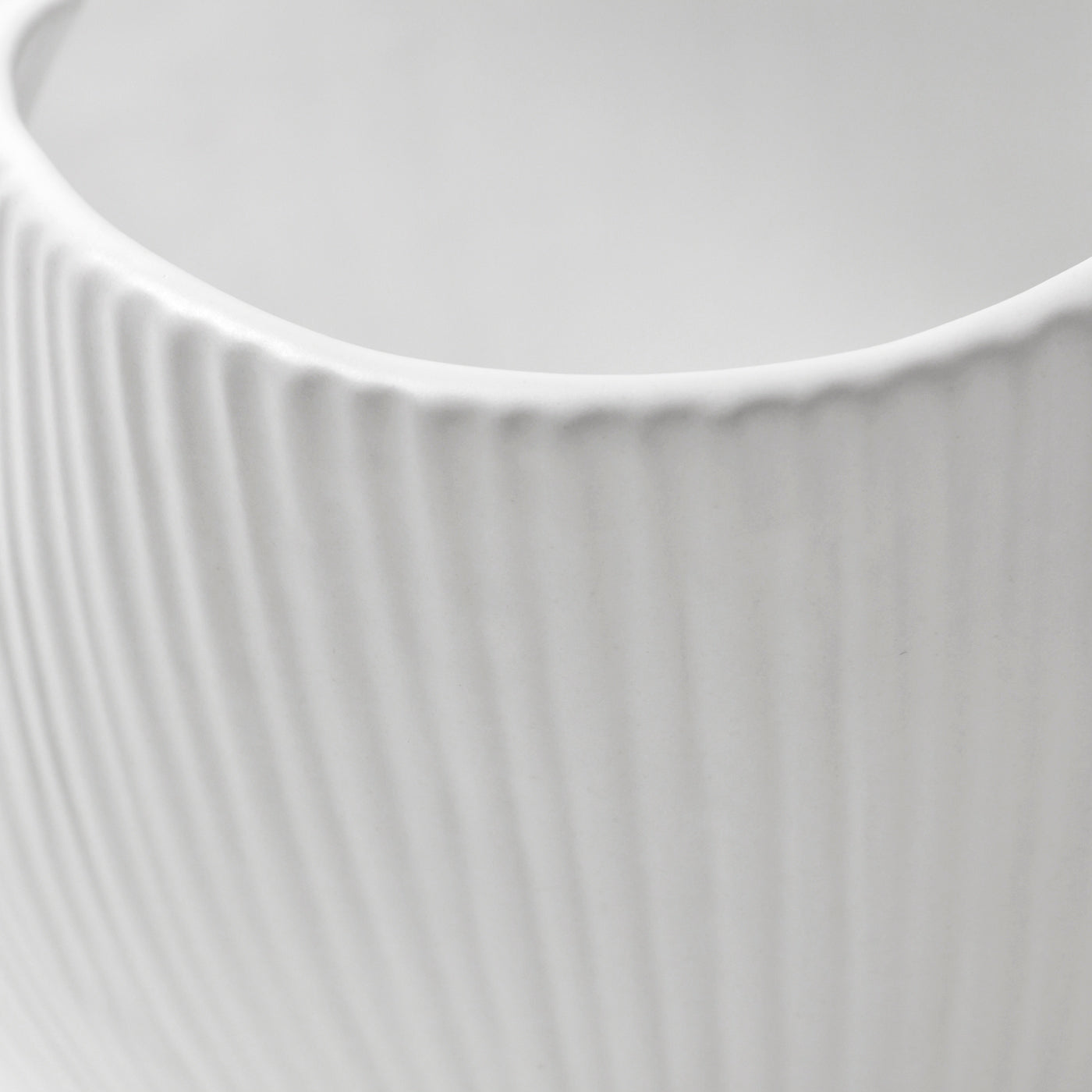 Ispirata a semi, cirripedi, ciottoli e altre meraviglie naturali, la nostra collezione Relief in gres porcellanato è smaltata in tonalità tenui con una finitura satinata opaca che si rompe leggermente durante la cottura, rivelando delicati motivi modernisti. Crea il tuo paesaggio urbano personale, ricco di sentimento, abbinando vasi e ciotole e combinando motivi, tonalità e dimensioni.