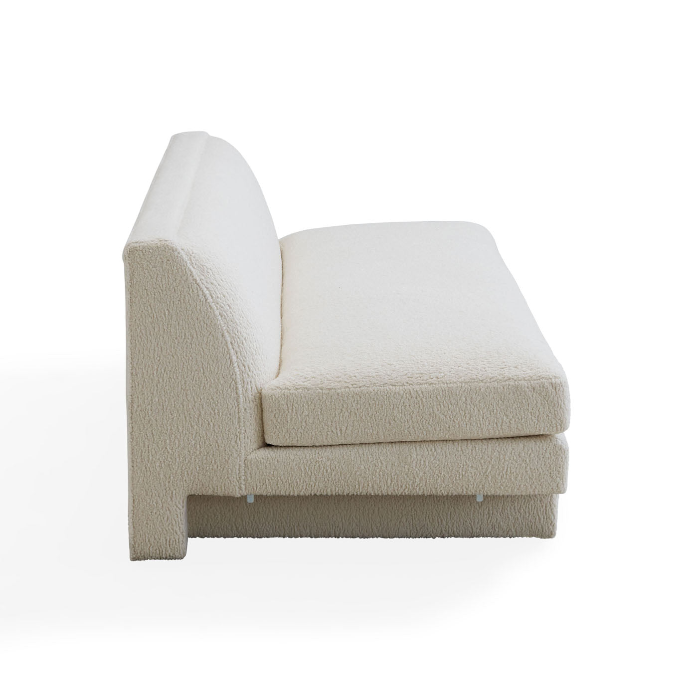Aperto, accogliente e ultra-elegante. La forma aerodinamica è ammorbidita da angoli arrotondati, uno schienale sapientemente inclinato e un cuscino della panca morbido e invitante. Trés après-ski nel nostro rivestimento Teddy ultra-accogliente: pelliccia sintetica realizzata con filati bouclé a pelo tagliato.