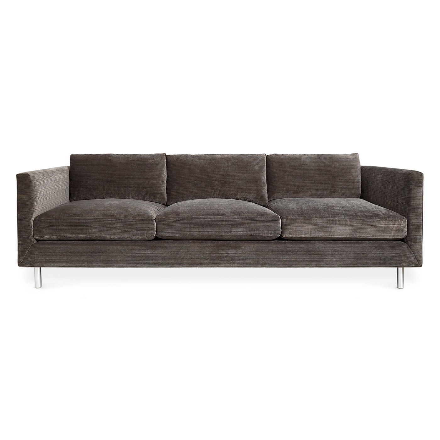 Il divano Topanga è un'aggiunta raffinata ed elegante alla tua caverna. Le gambe in acciaio inossidabile compensano gli angoli anteriori smussati per un look sartoriale, proprio come il tuo abito preferito. I morbidi cuscini in piuma d'oca di grandi dimensioni evitano che l'ambiente diventi soffocante.